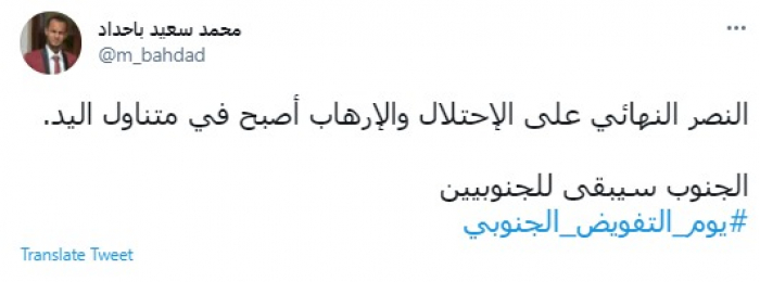 باحداد: الجنوب سيبقى للجنوبيين.. والنصر أصبح في متناول اليد