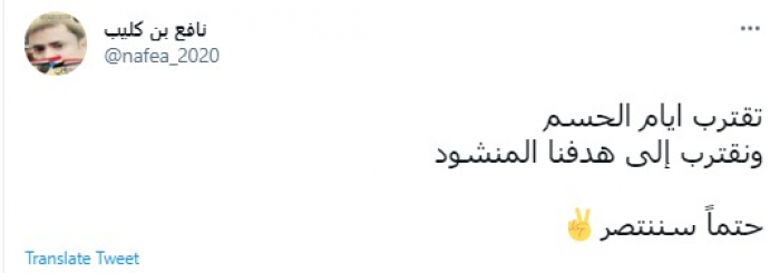 وكتب في تغريدة عبر "تويتر" رصدها "المشهد العربي": "تقترب أيام الحسم ونقترب إلى هدفنا المنشود.. حتمًا سننتصر".