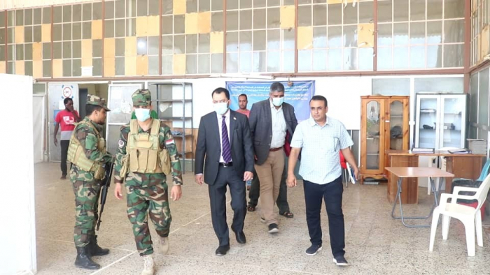 تفقد رئيس لجنة الإغاثة والأعمال الإنسانية بالمجلس الانتقالي الجنوبي المهندس عدنان الكاف، ورئيس تنفيذية انتقالي العاصمة المهندس نزار هيثم، اليوم الأحد، سير العمل بمحجر "الكميتي هول" للعزل الصحي في مديرية البريقة بالعاصمة عدن.