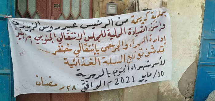 الانتقالي يواصل توزيع المواد التموينية على أسر الشهداء بخنفر