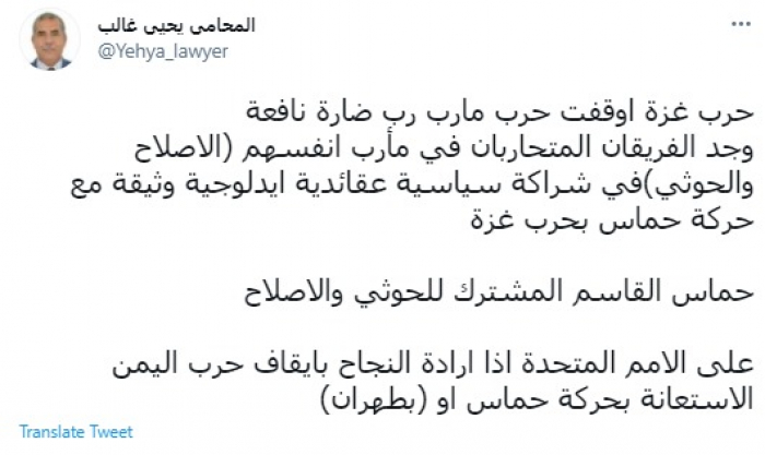 غالب: حماس القاسم المشترك للحوثي والإصلاح.. وأحداث غزة أثبتت ذلك