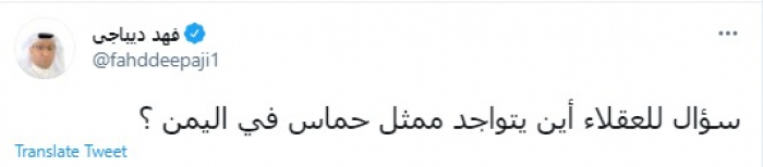 وقال في تغريدة عبر "تويتر" رصدها "المشهد العربي": "سؤال للعقلاء أين يتواجد ممثل حماس في اليمن؟".