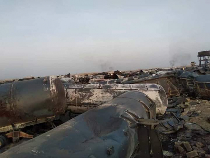واحترقت أكثر من 20 قاطرة محملة بالغاز، في منطقة العرقين، بالقرب من المدينة، خلال الاشتباكات.