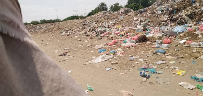 في مشهد غير إنساني، تكدست أكوام القمامة في محيط مقبرة جعار القديمة، دون مراعاة لحرمة الموتى.