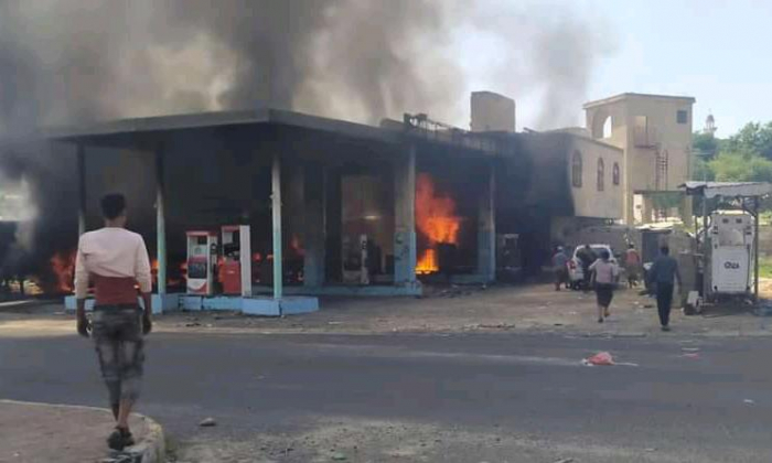 حريق هائل يلتهم إحدى محطات الوقود بتعز