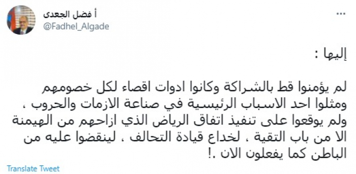 الجعدي: الشرعية تنقض على اتفاق الرياض من الباطن
