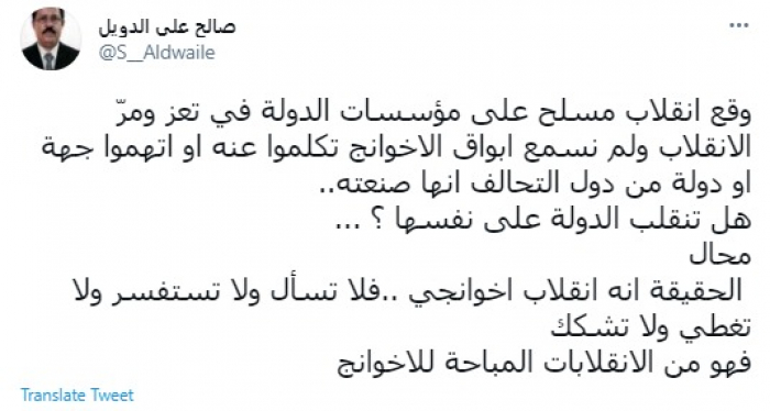 الدويل يفضح ازدواجية إخوان اليمن وانتهازيتهم