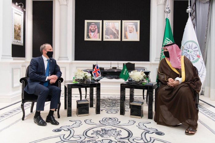 بحث نائب وزير الدفاع السعودي الأمير خالد بن سلمان، ووزير خارجية المملكة المتحدة، دومينيك راب، في لقاء مشترك، اليوم الاثنين، جهود إحلال السلام في اليمن.