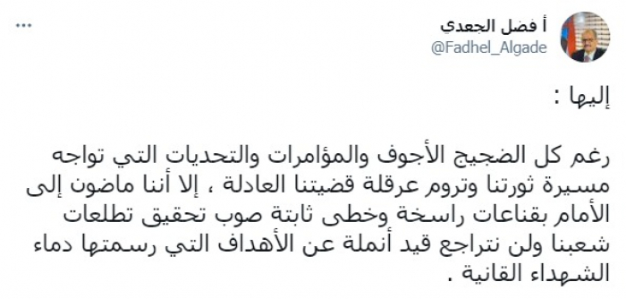 وأكد الجعدي أننا: "لن نتراجع قيد أنملة عن الأهداف التي رسمتها دماء الشهداء القانية".