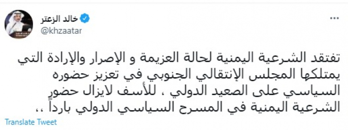 الزعتر: الشرعية تفتقد لإرادة وإصرار الانتقالي