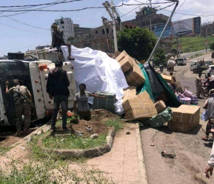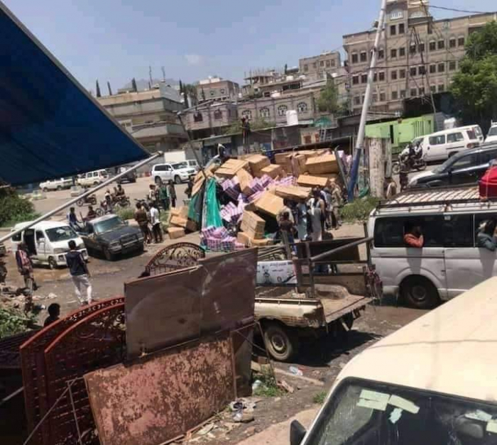 وانقلبت شاحنة نقل محملة ببضائع ، بحسب مصادر "المشهد العربي"، في الشارع، جراء تهالك الطريق وانتشار الحفريات، ورقع الأسفلت.