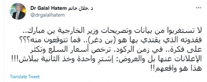 وأضاف: "على فكرة.. في زمن الركود، ترخص أسعار السلع وتكثر الإعلانات عنها بل والعروض: إشترِ واحدة وخذ الثانية ببلاش".