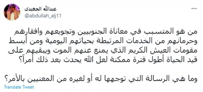 الجعيدي يتساءل: من المتسبب في معاناة الجنوبيين؟