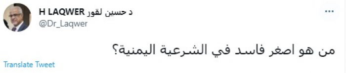 وقال في تغريدة عبر "تويتر" رصدها "المشهد العربي": "من هو أصغر فاسد في الشرعية اليمنية؟".