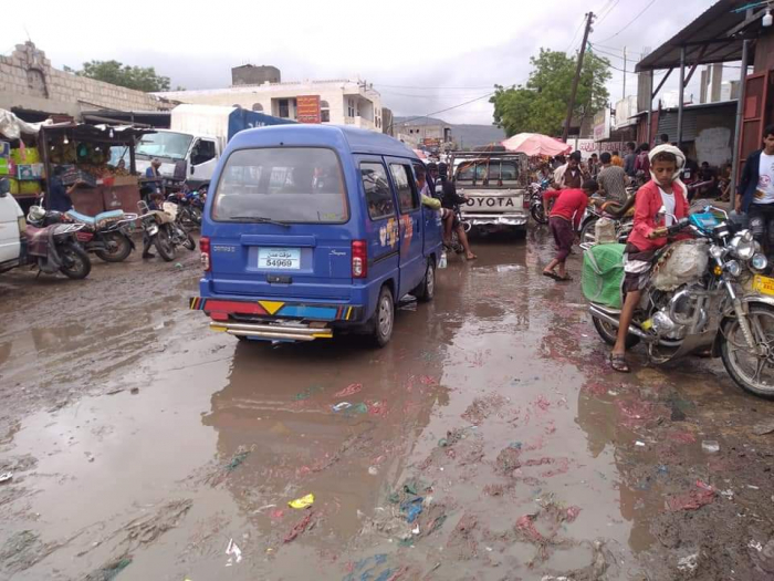 وحولت مياه الأمطار، الشارع الرئيسي بالمديرية وعدد من الأحياء إلى مستنقعات وحفريات.