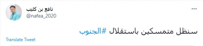 وقال في تغريدة عبر "تويتر" رصدها "المشهد العربي": "سنظل متمسكين باستقلال الجنوب".