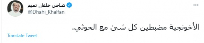 وقال في تغريدة عبر "تويتر" رصدها "المشهد العربي": "الإخونجية مضبطين كل شيء مع الحوثي".