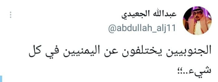 وشدد في تغريدة على حسابه بموقع التدوين المصغر تويتر، اليوم على أن: "الجنوبيين يختلفون عن اليمنيين في كل شيء".