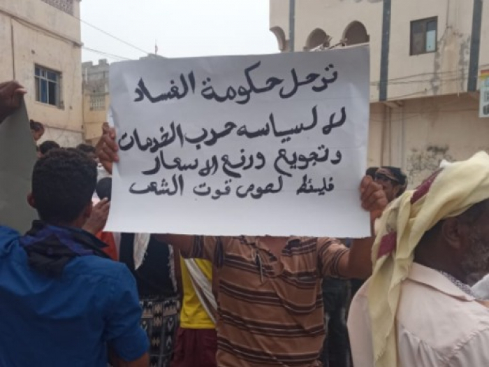 ورددوا هتافات وشعارات رافضة لغياب الرقابة على الأسواق، والتسعير العشوائي للمواد الغذائية، مطالبين بطرد الفاسدين، وإنهاء حصار الجنوب خدميًا واقتصاديًا.