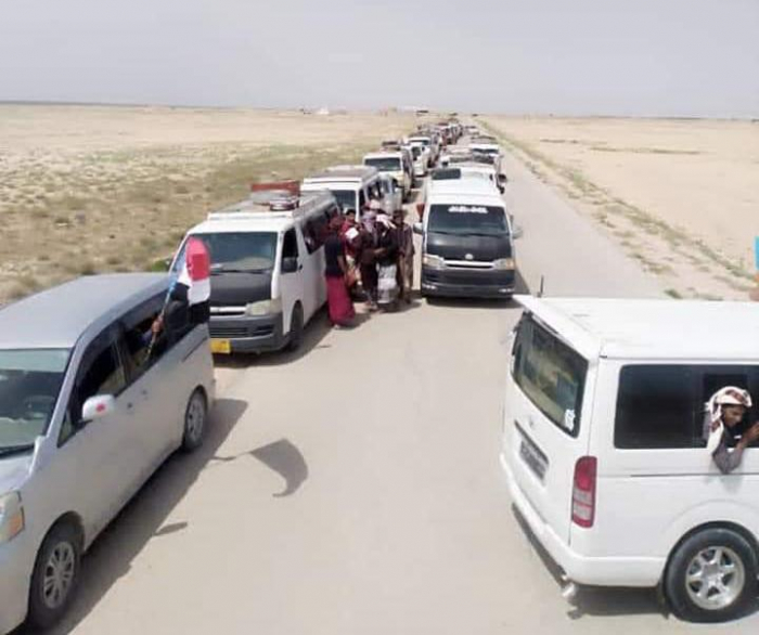 وانطلق الوفد المكون من 25 باصًا، وعدد من السيارات الخاصة باتجاه مدينة المكلا.