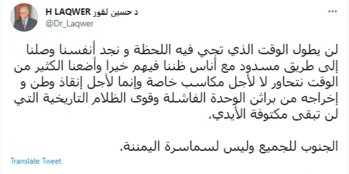 واختتم: "الجنوب للجميع وليس لسماسرة اليمننة".
