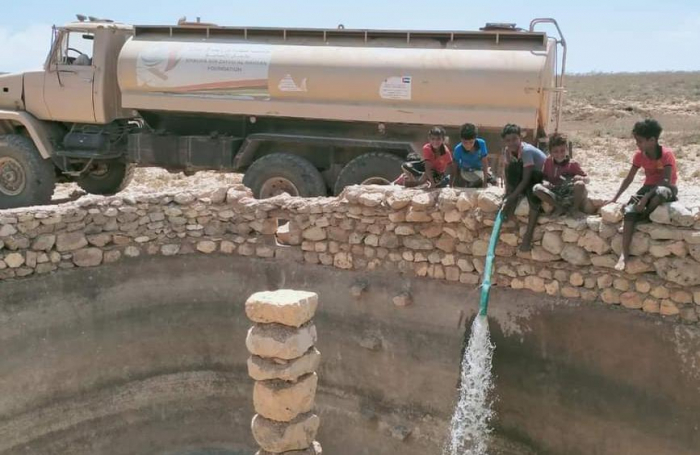 ودفعت المؤسسة الإنسانية الإماراتية، بإمدادات المياه إلى مناطق الشح المائي غرب سقطرى، للتخفيف من وطأة تأخر هطول الأمطار الموسمية.