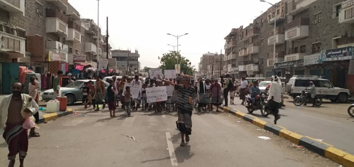 ورفع المتظاهرون لافتات منددة بحرب الخدمات التي تخوضها الشرعية الإخوانية ضد السكان، وحصارها الاقتصادي على الجنوب.