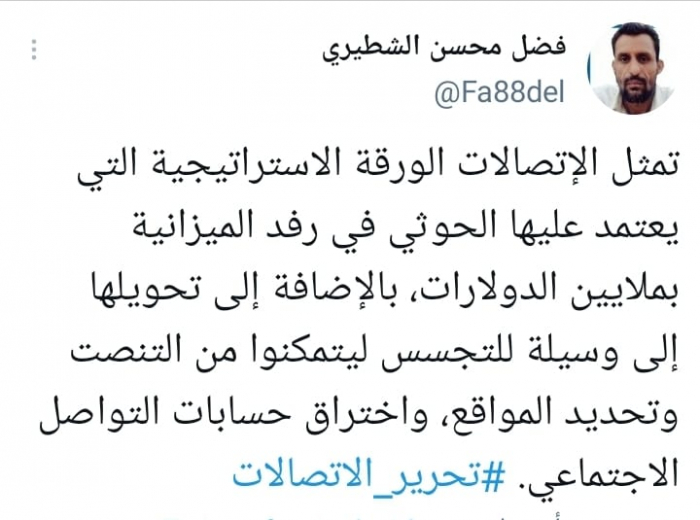 الشطيري: الحوثي يستغل الاتصالات لأهداف استراتيجية