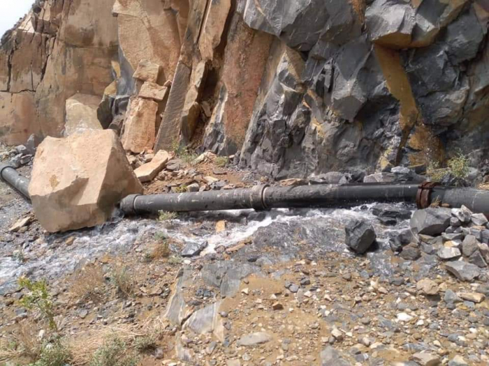 ووقعت انهيارات صخرية نتيجة سقوط أمطار شديدة الغزارة، فجر اليوم الجمعة، ما أدى إلى انكسار الخط.