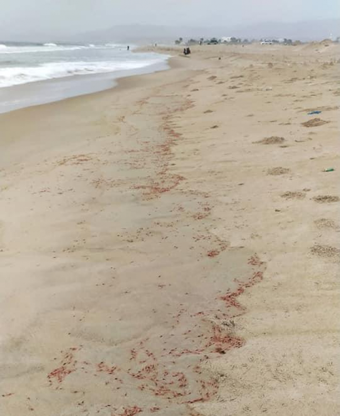 تداول مواطنون على مواقع التواصل الاجتماعي، اليوم الجمعة، صور انتشار كميات كبيرة من الجمبري على شواطئ مدينة المكلا في ساحل حضرموت.