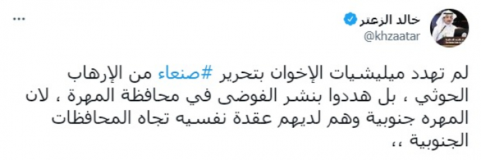 الزعتر: تهديد الإخوان بفوضى في المهرة نابع من عقدة