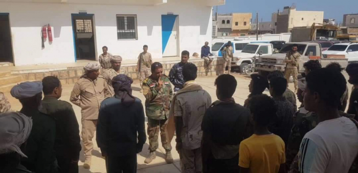 تفقد العميد محسن الحاج أركان اللواء الأول مشاة بحري في أرخبيل سقطرى، خلال زيارته مركز شرطة الشامل في حديبو، يوم الأحد، للوقوف على سير العمل في أقسامه.