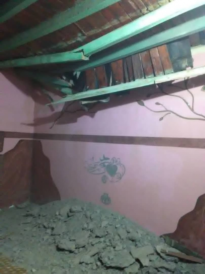 وانهار سقف المنزل وتشققت جدرانه، جراء سقوط الأمطار خلال الآونة الماضية، على المحافظة.