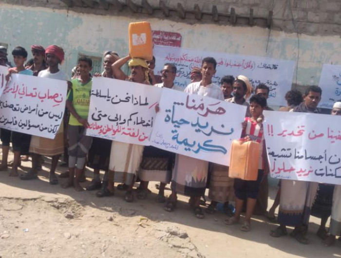 وندد المتظاهرون بتدمير مليشيات الشرعية الإخوانية للخدمات الأساسية، وتغييب مقومات الحياة، وتأزيم الظروف المعيشية للمواطنين انتقامًا من رفضهم وجودها بالمحافظة.