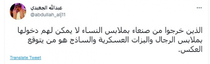 وقال في تغريدة عبر "تويتر" رصدها "المشهد العربي": "الذين خرجوا من صنعاء بملابس النساء لا يمكن لهم دخولها بملابس الرجال والبزات العسكرية والساذج هو من يتوقع العكس".