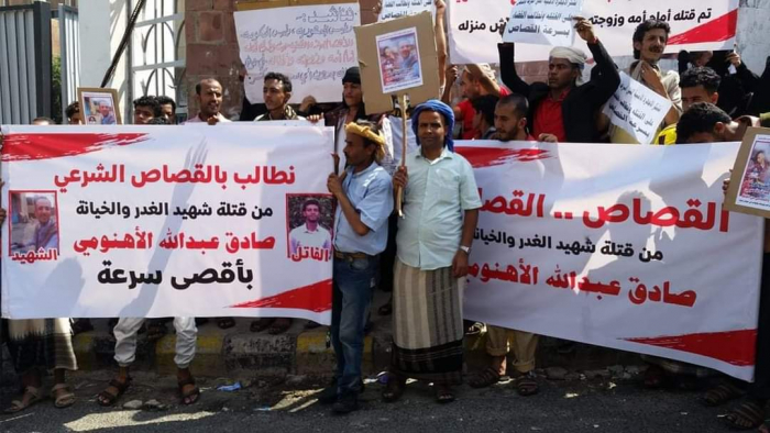 وطالبوا بمحاكمة قضائية عاجلة وناجزة لقاتل المواطن صادق عبدالله الأهنومي وإحالته للقضاء، رافضين المماطلة والتسويف وإهدار حق المجني عليه.