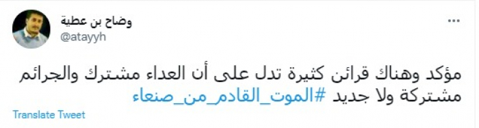 وكتب في تغريدة عبر "تويتر" رصدها "المشهد العربي": "مؤكد وهناك قرائن كثيرة تدل على أن العداء مشترك والجرائم مشتركة ولا جديد".